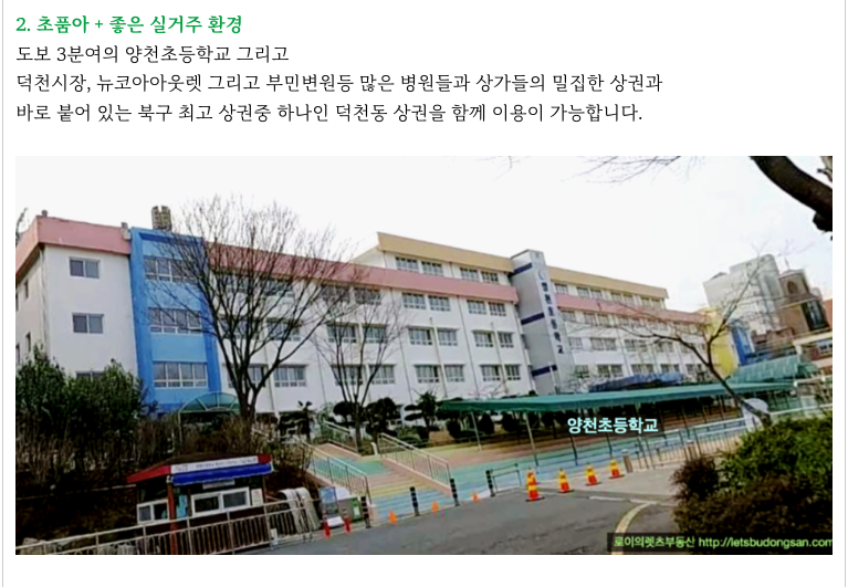 북구에서 가장 큰 상권중 하나인 덕천동 상권의 바로 인근으로 생활 인프라가 편리하고