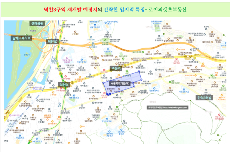 숙등역 역세권 덕천3구역 재개발 의 간략한 특징을 다시 한번 정리하여 드립니다.