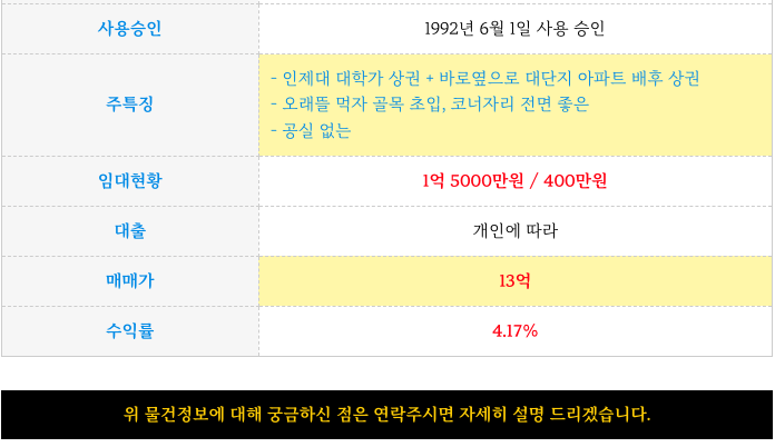인제대학교 혼통 코너자리 3층 건물 빌딩 매매 물건 정보 소개해 드리겠습니다.