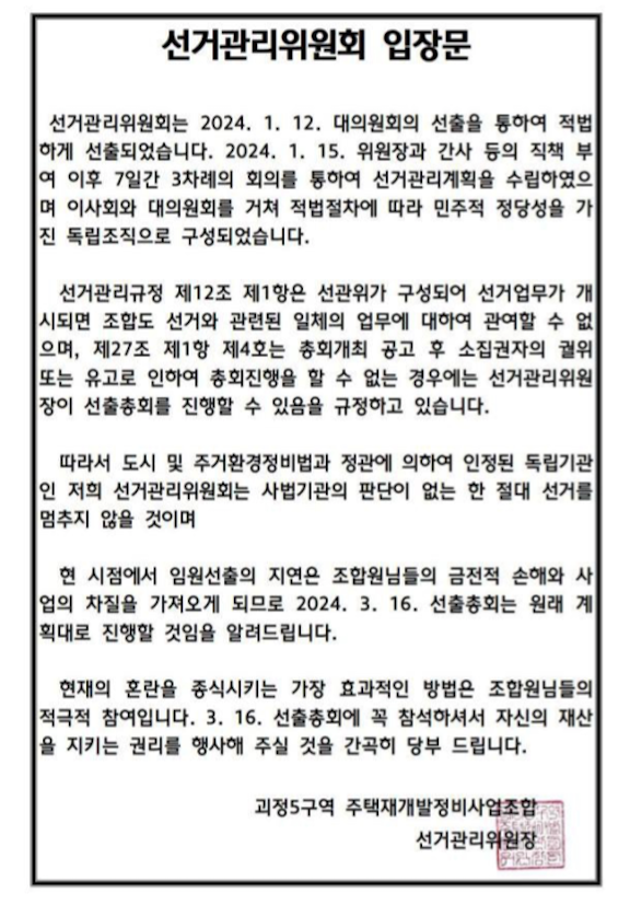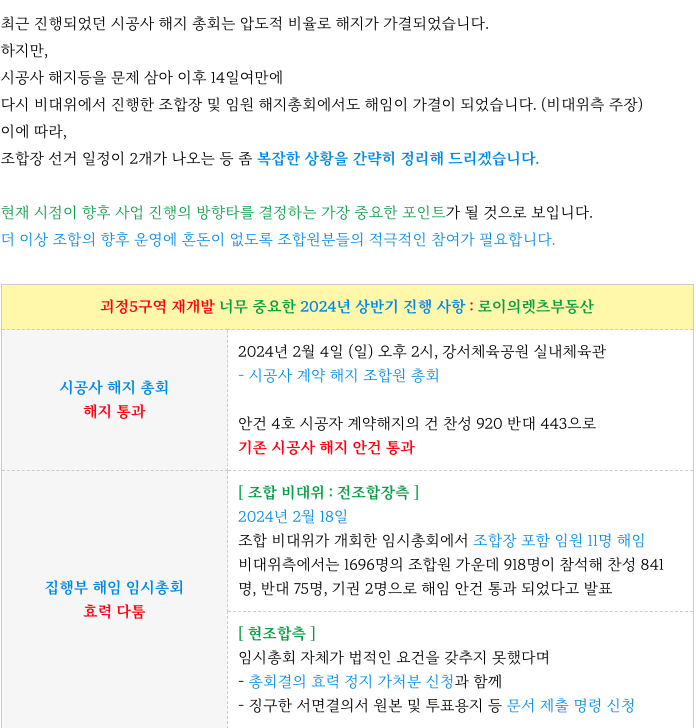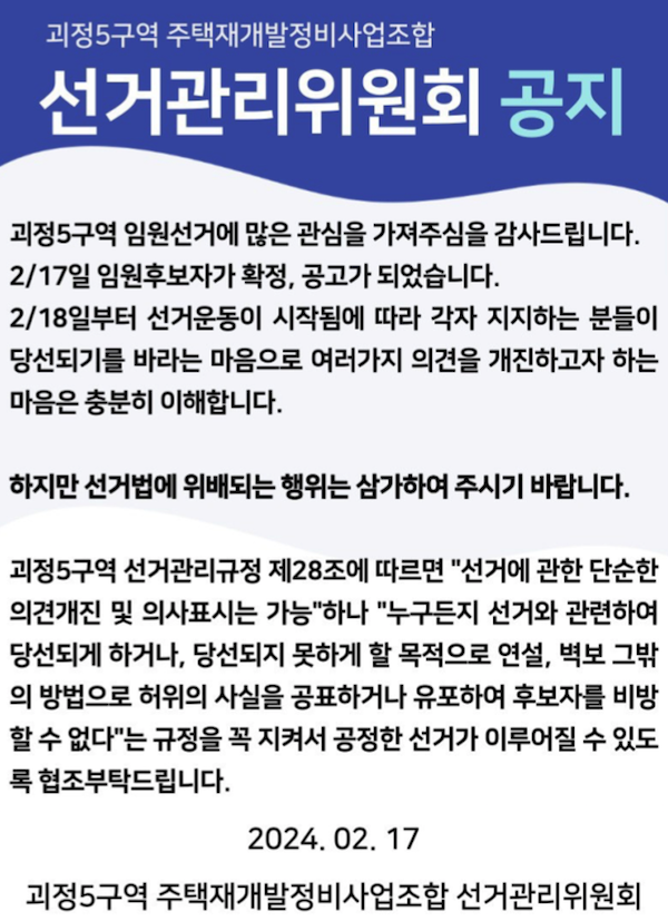 괴정5구역 재개발은 조합장 선거를 앞두고 최근 조금은 혼란한 상황 부분 정리하여 드립니다.