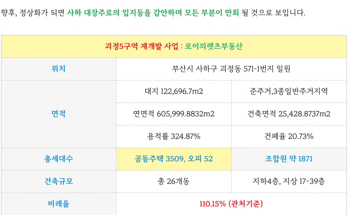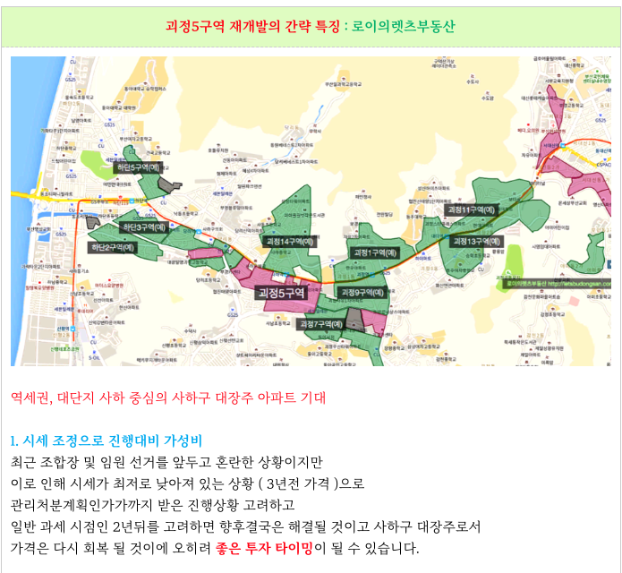 사하 대장주 괴정5구역 재개발 간략 특징을 정리해 드립니다.