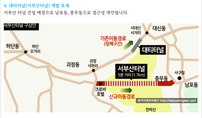 또한, *서부산터널(대티2터널) 개발로 남포동 및 부산역 등 중구로의 접근성이 크게 개선이 됩니다.