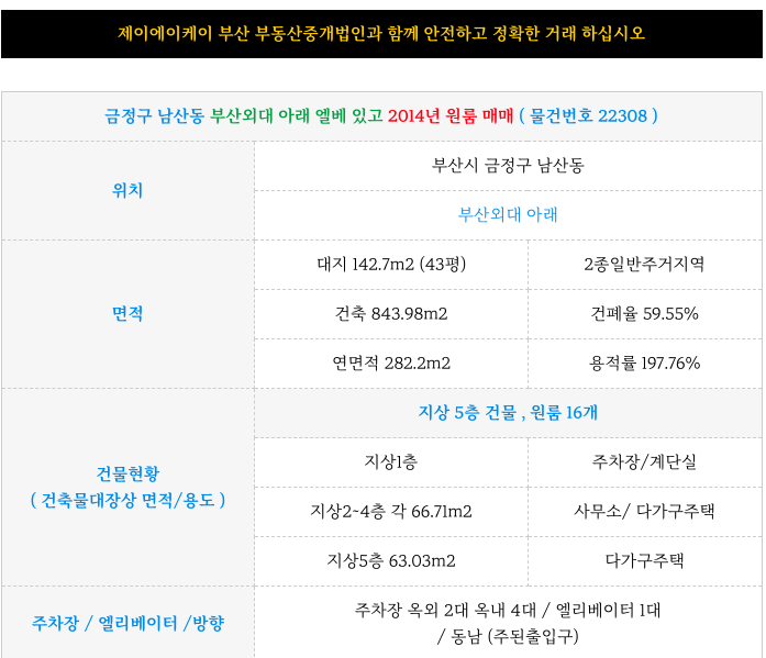 금정구 구서동 부산외대 아래 엘베 있고 2014년 원룸 건물 빌딩 매매 물건도 소개해 드립니다.