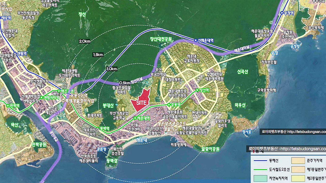해운대 최고 중심 상권인 구남로의 윗쪽, 해운대역 뒷편에 위치하고 있으며