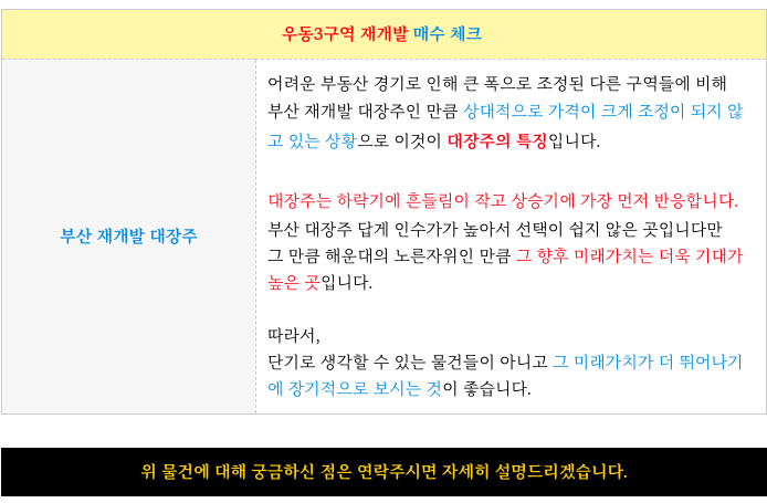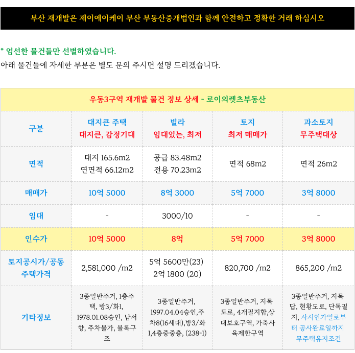 우동3구역 재개발 현 최저 매물 등을 소개 해 드리겠습니다.