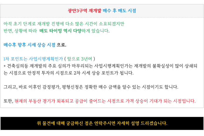 광안3구역 재개발 가격 조정 된 급매 물건 및 죄저 매물 소개해 드리도록 하겠습니다.