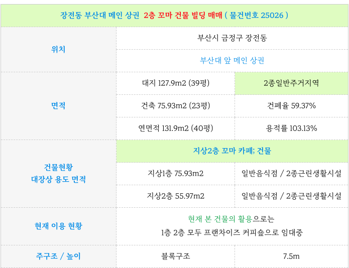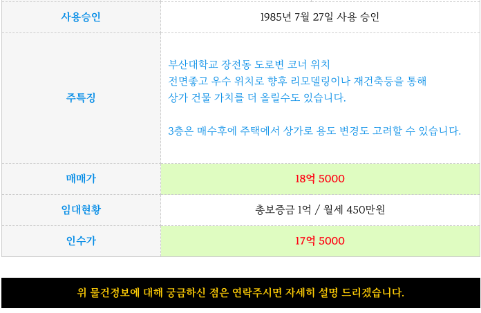 장전동 부산대 메인 상권 2층 꼬마 건물 빌딩 매매 물건 정보 상세 정리해드립니다.