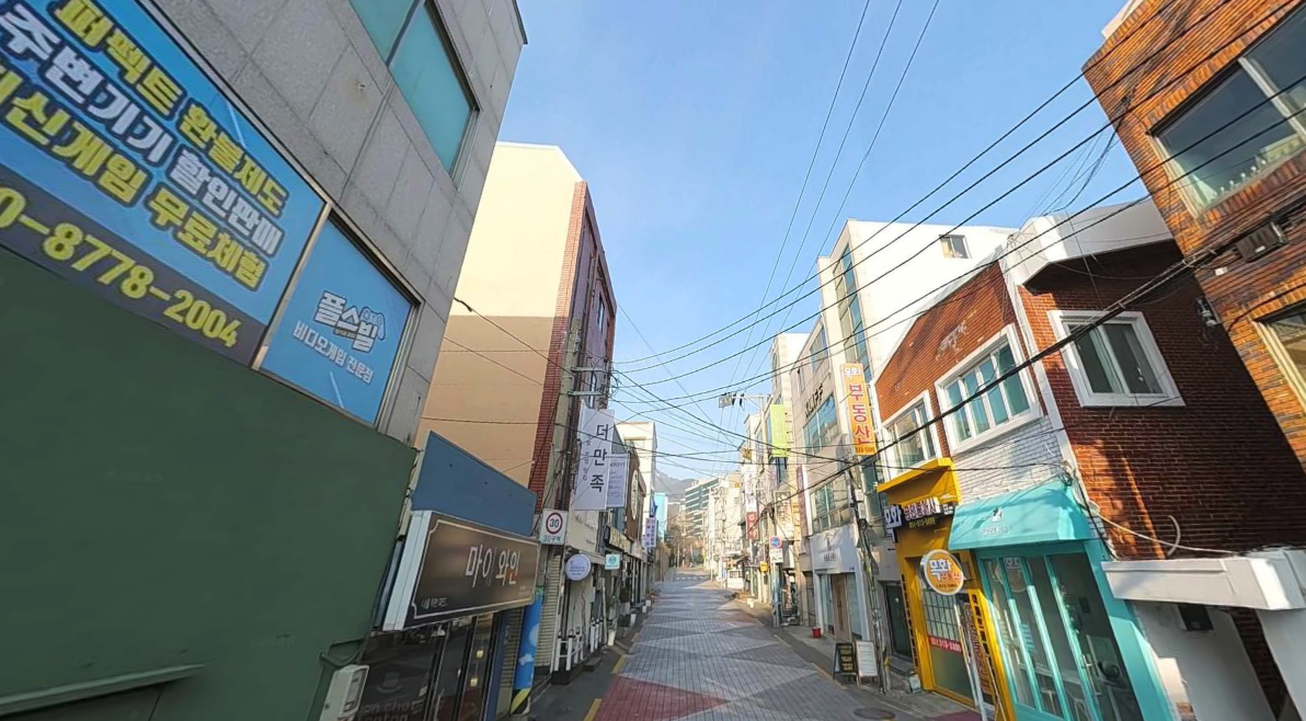 부산대 메인 상권, 정문앞 기준 8개 블록 내에 포함되어 있는 2층 올근생 꼬마 건물 입니다.