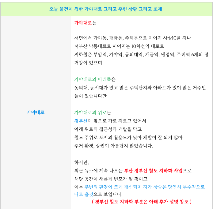오늘 물건의 개발호재로 품은