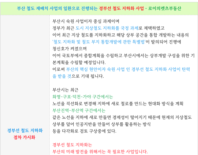 - 경부선 철도 지하화 개발 호재 품은어 미래 투자 가치로 토지가치로만 봐도 괜찮은
