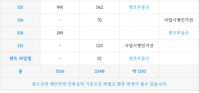 대연8구역 재개발 각 타입별 세대수 입니다.