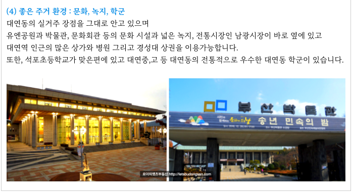 대연동이라는 실거주 환경이 좋은 곳에 위치하고 있으며