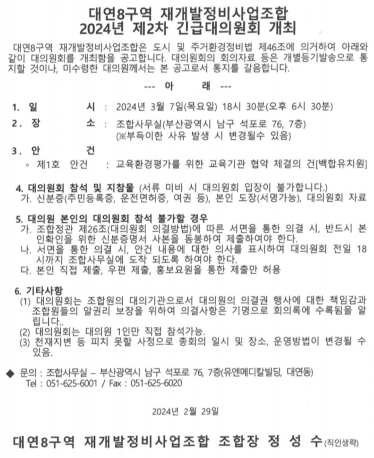 대연8구역 재개발은 최근 조합장 선가가 있었습니다.