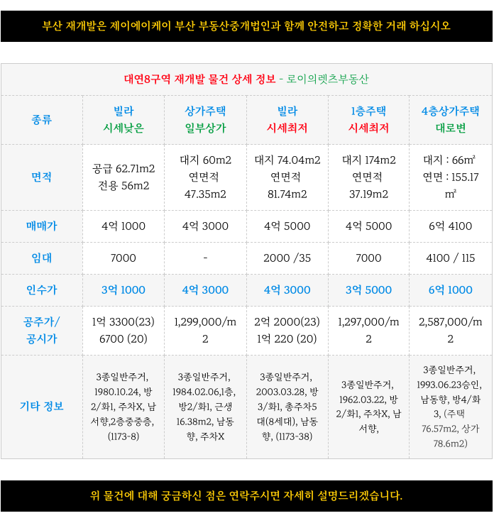 대연8구역 재개발의 현 최저 매물들 정리해 드리겠습니다.