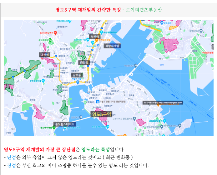 영도5구역 재개발의 전반 입지적 특징을 다시 한번 정리하였습니다.