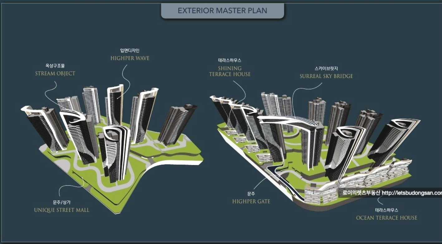 - 스카이브릿지, 럭셔리 커튼월룩, 오션테라스하수, 특화조경 등