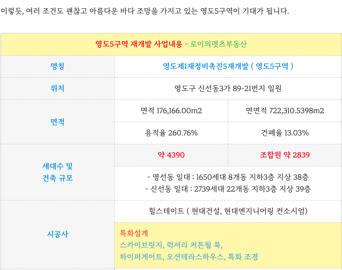 영도5구역 재개발의 주요 진행 부분 정리와 향후 진행 부분등 추가 정보는 아래 페이지를 참고 부탁드립니다.