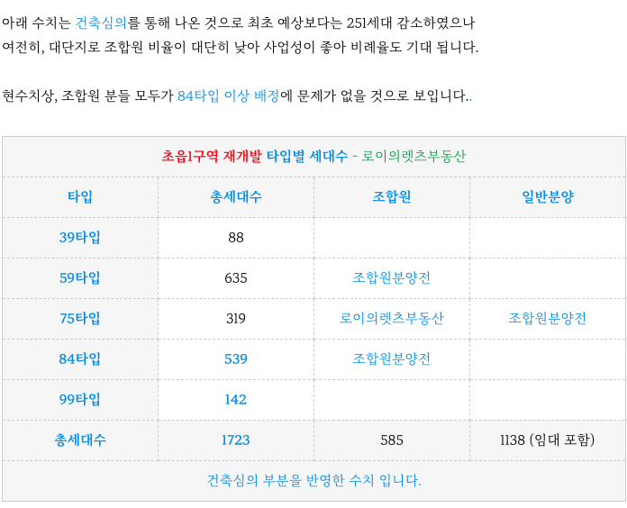 전체 세대수 대비 조합원 비율이 약 34% 밖에 되지 않아 사업성이 좋아