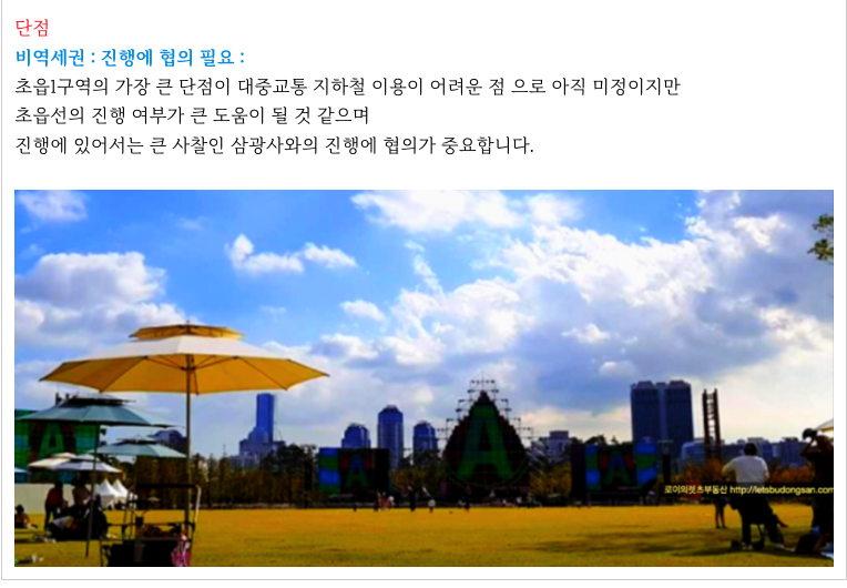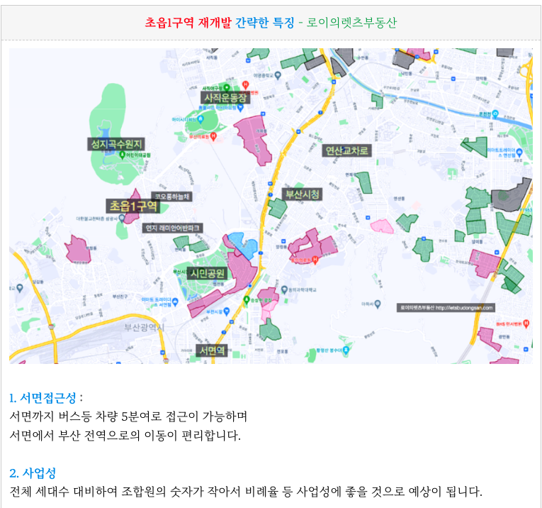 초읍1구역 재개발 특징 및 장점을 다시 한번 정리하였습니다.