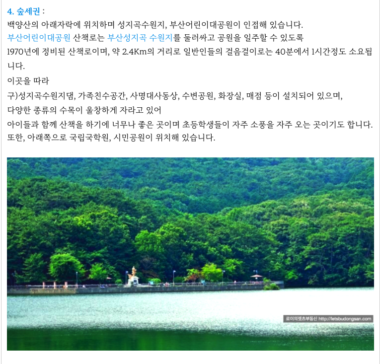 백양산을 뒤로하고 아름다운 성지곡 수원지를 도보 이용가능한 도심속 슾세권입니다.