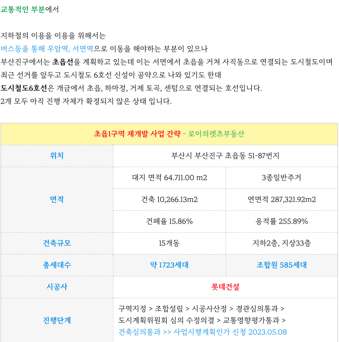 초읍1구역 재개발의 초기부터 지금까지의 진행상황을 정리등 추가 정보는 아래 페이지를 참고 부탁드립니다.