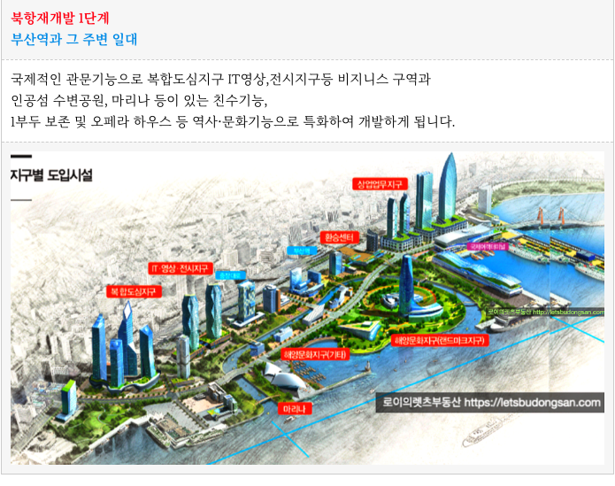 그럼, 북항재개발에 관해서도 간략 소개해 드리고 물건 소개해 드리겠습니다.