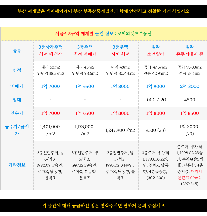 서금사5구역 현 최저 소액 매물들 소개해 드리겠습니다.