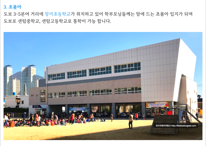 망미초등학교가 도보 3~5분 거리에 있습니다.