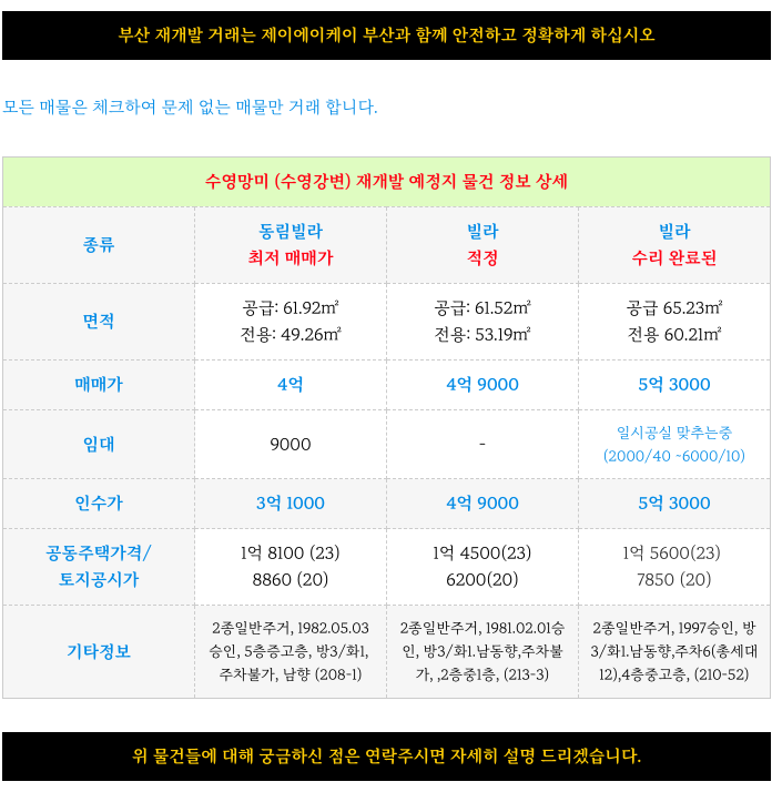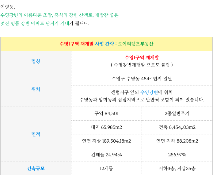 아름다운 수영1구역 재개발의 현 엄선 매물 정리 소개해 드립니다.