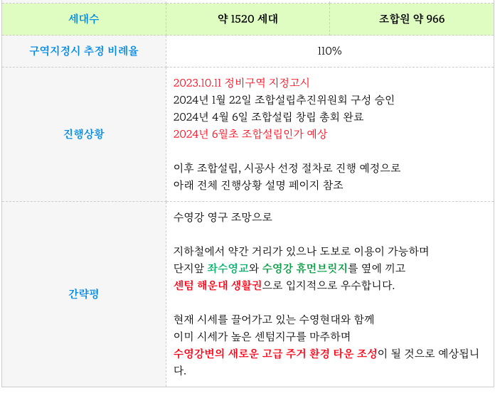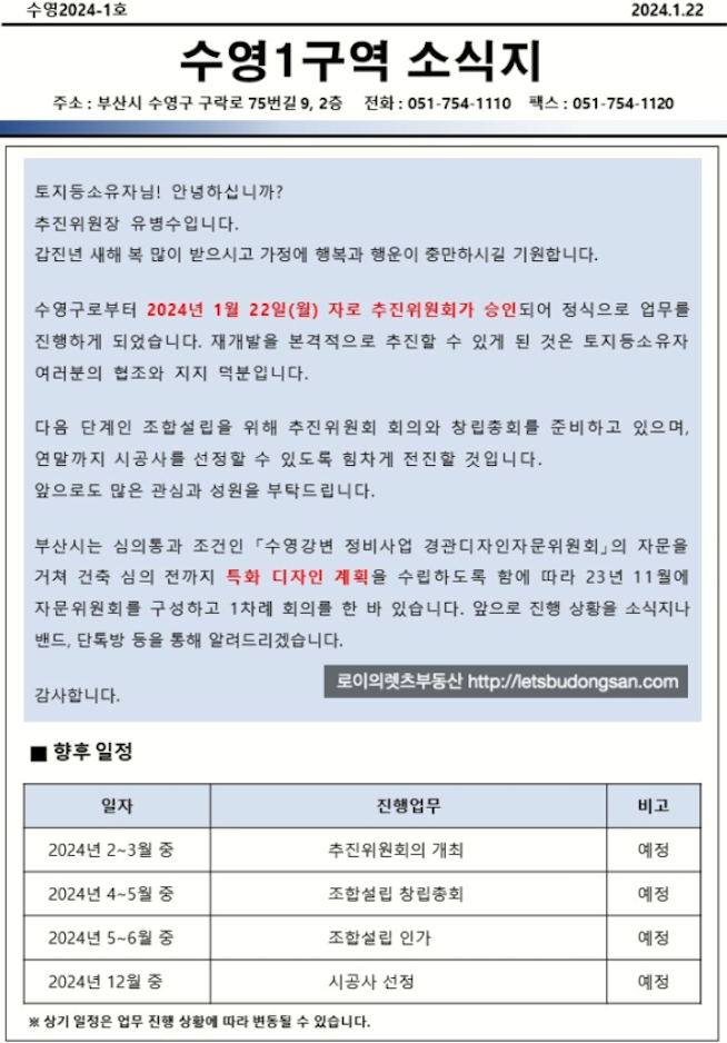 수영1구역 재개발 진행 부분 및 향후 일정 등 추가 정보는 아래 페이지를 참고 부탁드립니다.