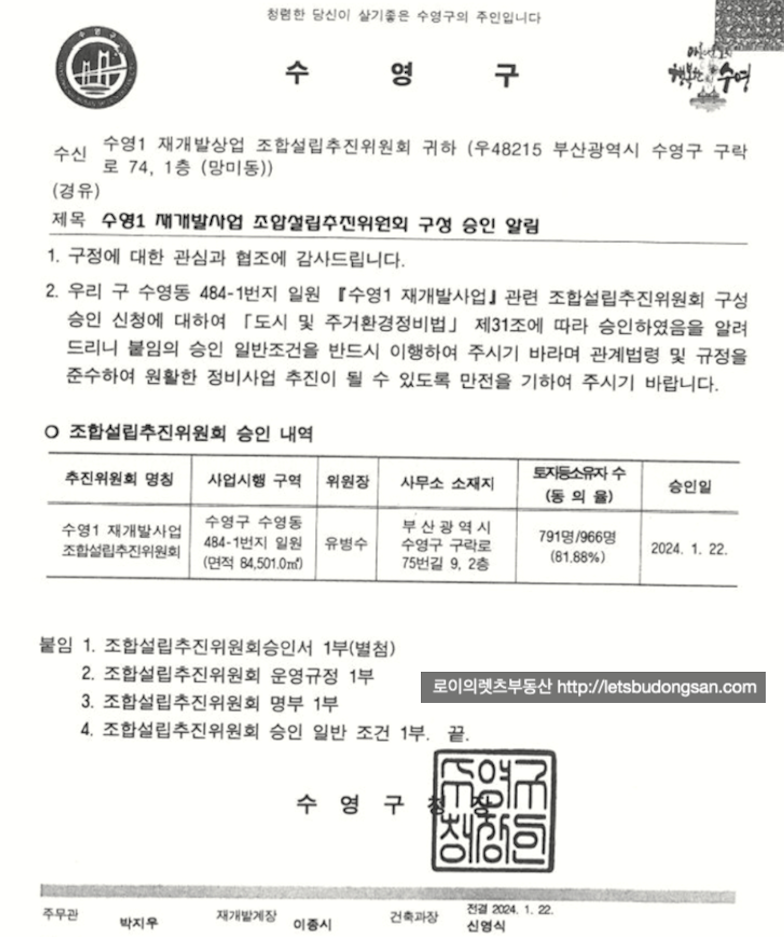 수영1구역 재개발 : 조합설립창립총회 및 최근소식 & 매물