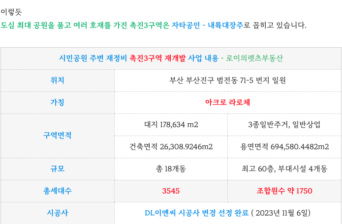 촉진3구역 재개발은 자타공인 부산 재개발의 내륙의 대장주로 꼽히는 곳으로