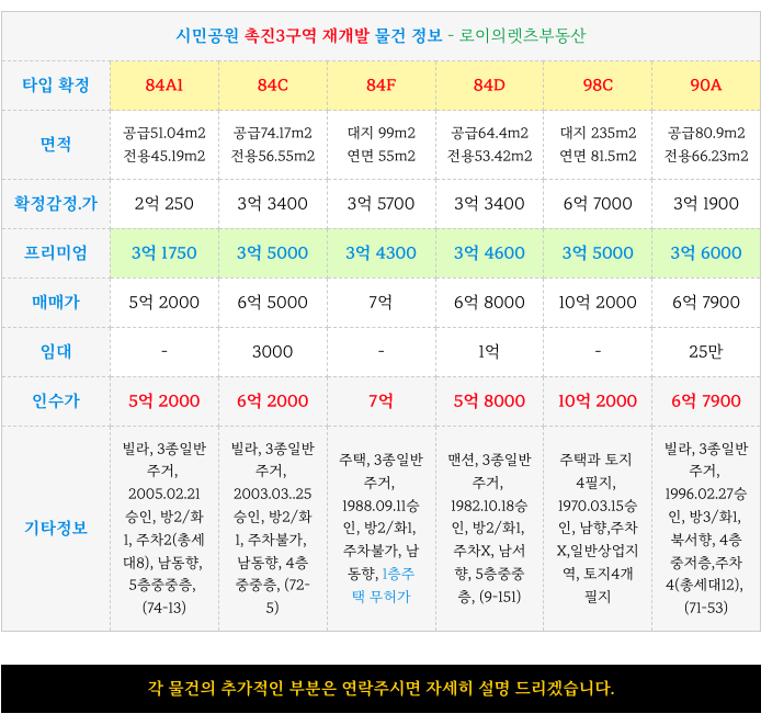 시민공원 촉진3구역 진행 상황과 타입별 최저 매물