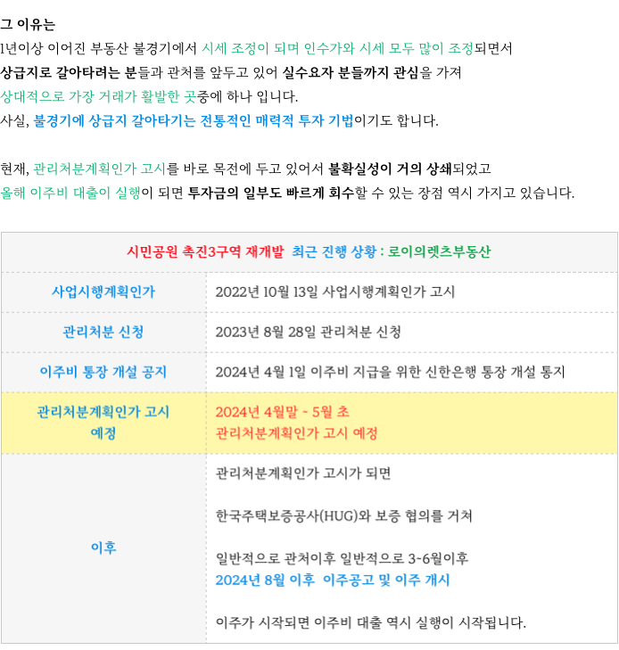 (관처임박) 촉진3구역 재개발 : 관리처분예상일정(4~5월) & 현 최저 매물