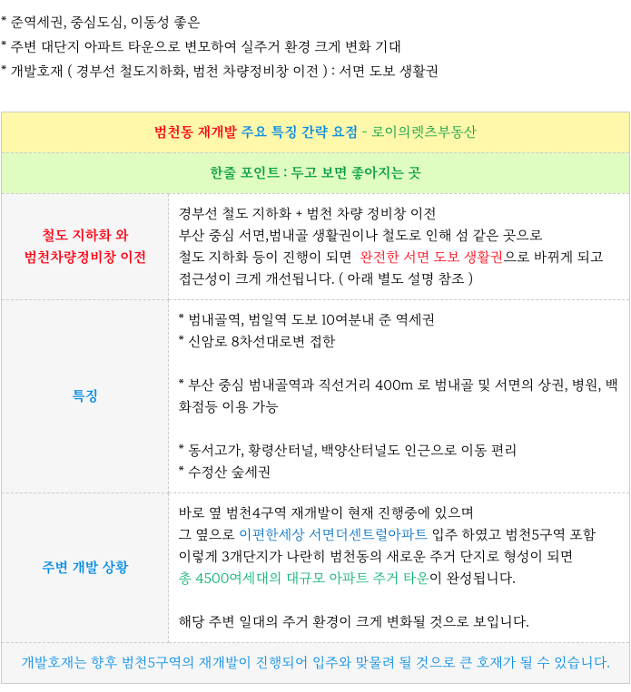 범천5구역 재개발 주변 개발 이슈 및 특징에 대한 간략 요점 입니다.