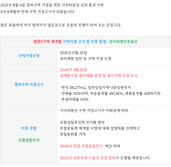 범천5구역 재개발 주요 진행 그리고 예상 일정등 추가 정보는 아래 페이지를 참고 부탁드립니다.