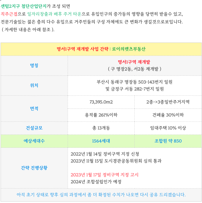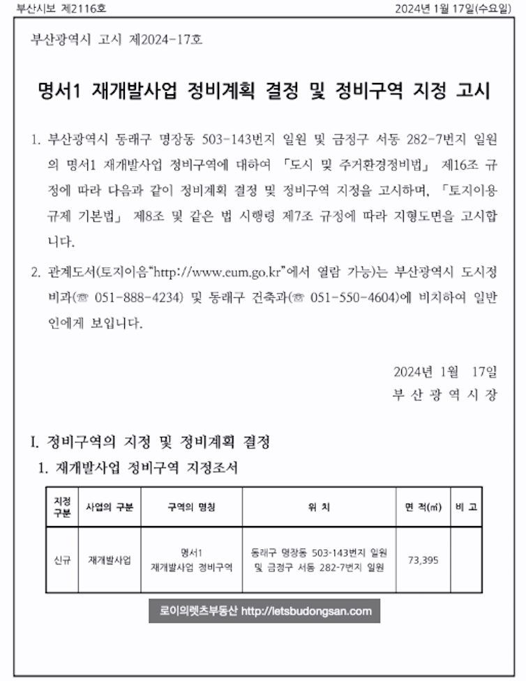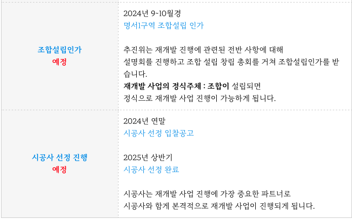 명서1구역 재개발 일자별 주요 진행 사항 정리등 추가 정보는 아래 페이지를 참고 바랍니다.