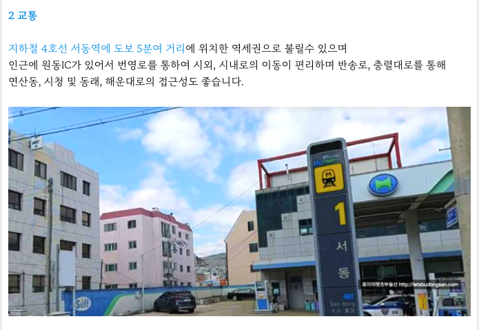 부산 지하철 4호선 서동역 도보 5분여 거리에 위치한 역세권 이고
