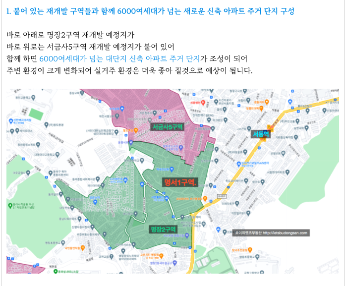 명서1구역은 말 그대로 명장동과 서동에 걸친 재개발 구역으로