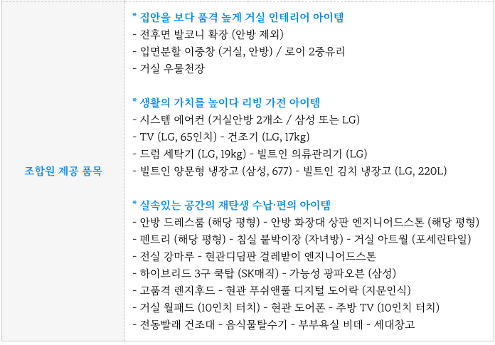 다양하고 고급화된 조합원 제공 품목