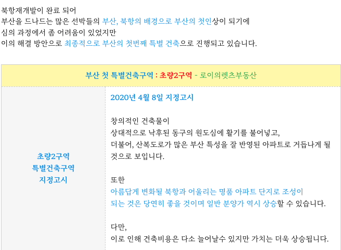 초량2구역 재개발은 특별건축으로 지정되어 진행되고 있습니다.