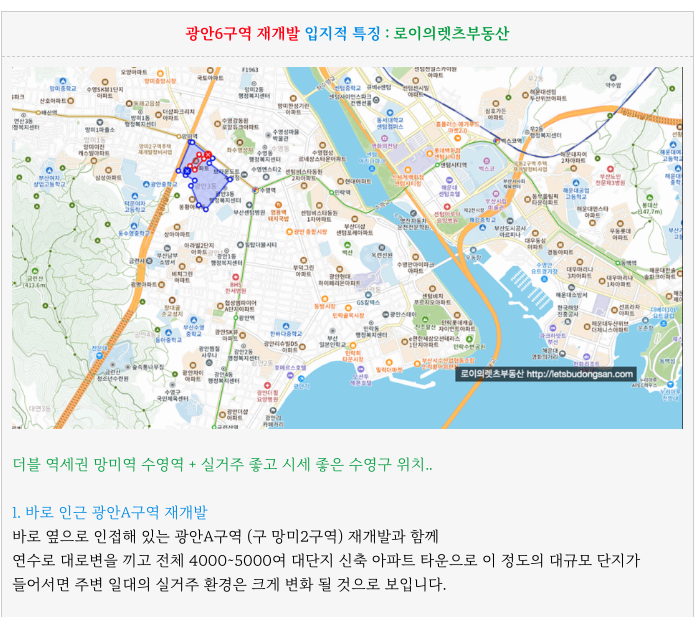 광안6구역 재개발 입지적 주요 특징들 다시 정리 소개 드립니다.