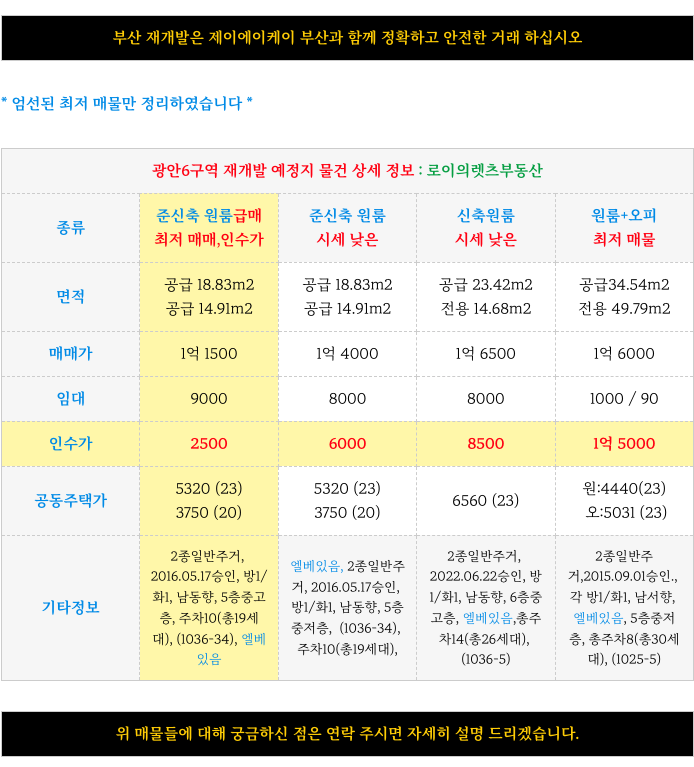 광안6구역 현 최저 매물들 소개하여 드리겠습니다.