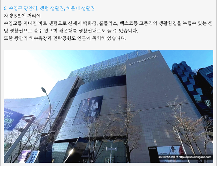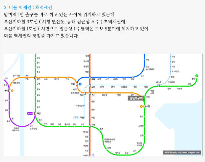 - 교통적으로 우수, 더블역세권, 수영구, 평지, 초품아,