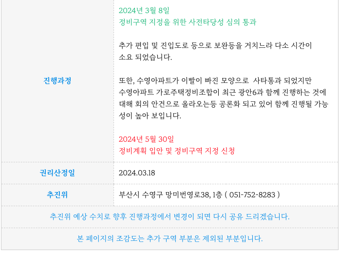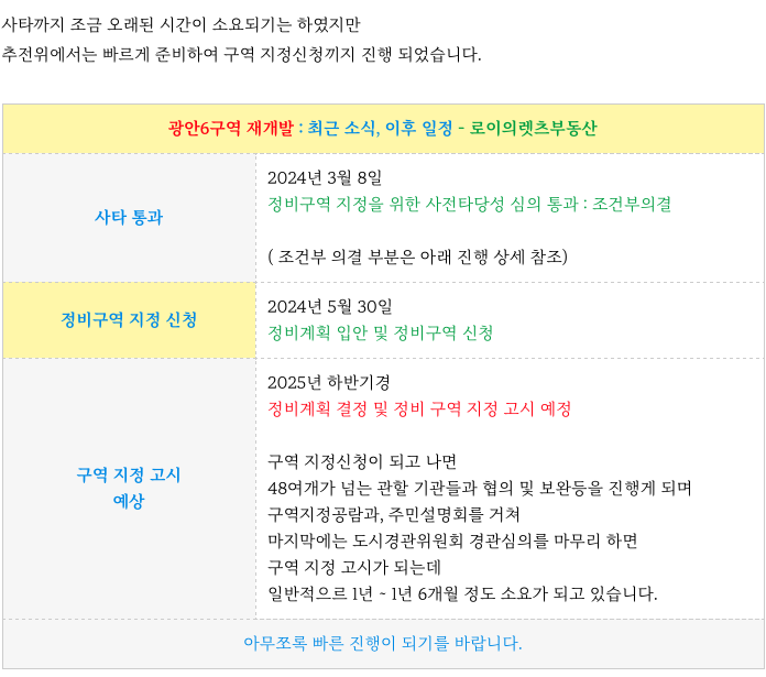 광안6구역 재개발 주요 일자별 진행과 이후 일정 정리등 추가 정보는 아래 페이지를 참고 부탁드립니다.
