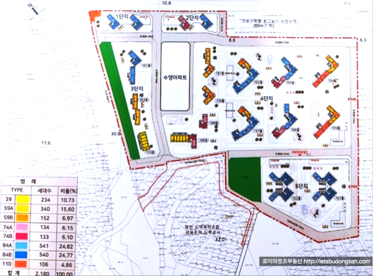 광안6구역 재개발 현재 추정 각 타입별 세대수 입니다.