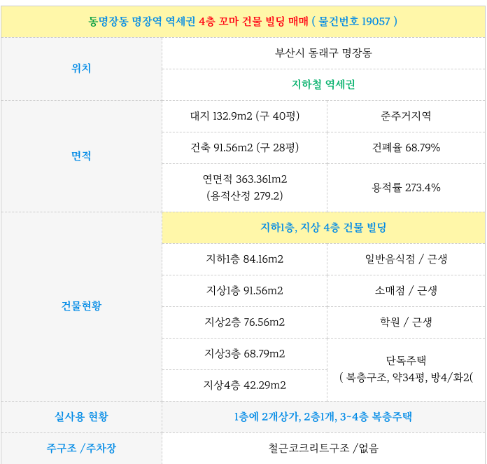 동래역 앞 명룬1번가 상권 2층 꼬마 건물 빌딩 매매 물건 제원 소개 드립니다.