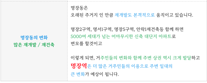 현재로도, 명장동은 많은 분들이 거주하고 있는 곳이어서 주거지 상권이 탄탄한 곳이며