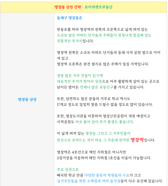 명장동 상권에 대해 간략 말씀 드리겠습니다.