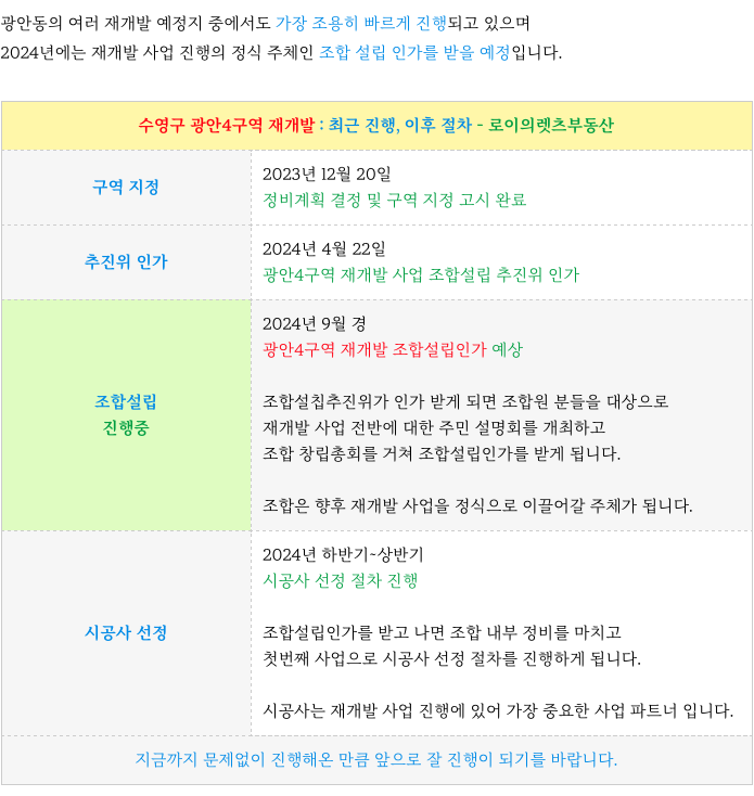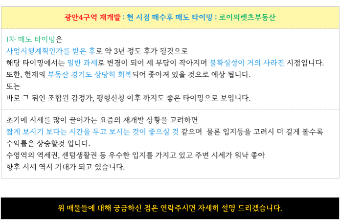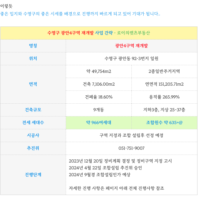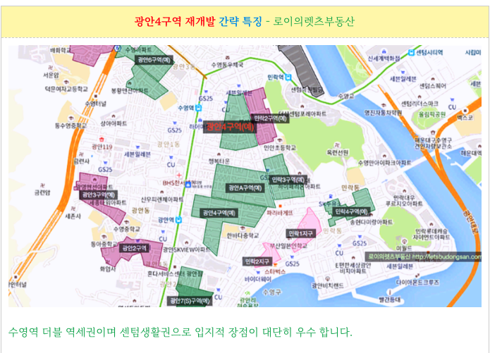 안녕하세요 JAK 제이에이케이 부산 ( 로이의렛츠부동산 ) 입니다 오늘은 수영구 광안4구역 특징과 진행 ...